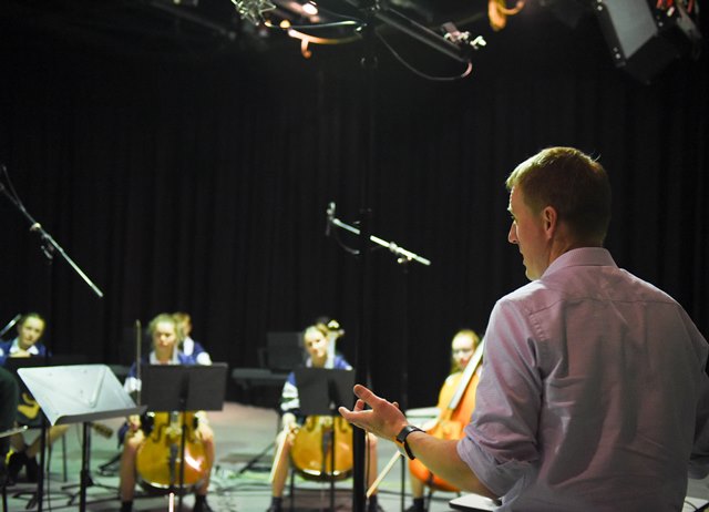 The orchestra, from the Riverina Anglican College (TRAC) in Wagga Wagga under the baton of Ms Clare Brassil, performed a number of pieces in the University's television production studios while CSU students recorded the sounds using the latest technologies.