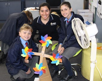 Ten mentors from the Centre have helped the Year 5 students to design and create projects including redesigning wind turbines, investigating water wheels and cooking with solar power.