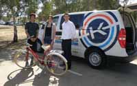 Charles Sturt University (CSU) student Ms Hannah McKenzie has been awarded for her support of moves to reduce bottled water at the institution. The animal science student from Young won a bicycle after completing a quiz to promote student awareness about the environmental, financial and health benefits of using tap water over purchasing bottled water. It is part of CSU Green’s Free Water Project which includes new bubblers and bottle refilling stations and the sale of reusable bottles at CSU retail outlets. CSU Green Manager Mr Ed Maher said, “The prize of a bike aims to encourage students to cycle to and from campus as well as around campus instead of driving. This benefits their health and wellbeing, hip pocket and the environment. As part of our sustainability targets, Charles Sturt University wants to reduce waste, save water and cut carbon emissions.” The bike was supplied by local business, Kidsons Cycles. You can read more about CSU Green’s Free Water Project here.